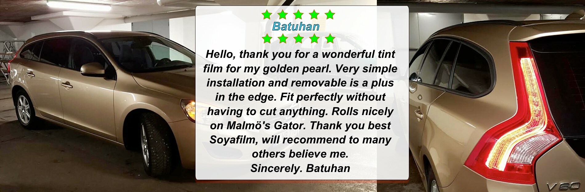 SOYAFILM® - Supereasy tint for your carOrder super simple solar film for VOLVONICE PRICE! until 2025-11-16from 159 SEK(Ordinary price: 279 SEK)